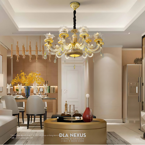 Vật liệu Hợp kim nhôm + chao thuỷ tinh + Pha lê