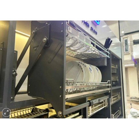 • Dễ dàng thao tác: Ngay cả khi bạn cần đặt nhiều bát đĩa hoặc các vật dụng nhà bếp lên giá, thao tác di chuyển vẫn diễn ra trơn tru và không bị cản trở.