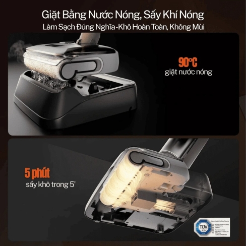 Tự giặt sấy con lăn 90 °C, sấy 30 phút – đảm bảo bộ phận lau luôn sạch khô, không vi khuẩn