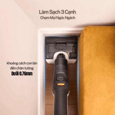 Với công nghệ Triple Edge Cleaning tiên tiến, Roborock F25 RT có khả năng tiếp cận và làm sạch hiệu quả mọi góc cạnh tường, chân cầu thang và khu vực sát chân tường, với khoảng cách chỉ dưới 0.03 inch (~0.76mm). Không còn bụi bẩn tích tụ nơi khó với – dù là ở góc tường, chân tủ hay chân cầu thang, mọi khu vực đều sạch bong sáng bóng.