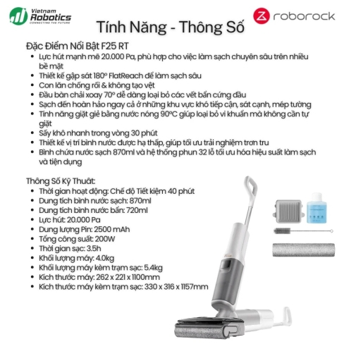 Roborock F25 RT – Máy Hút Bụi Lau Nhà Thông Minh, Sạch Sâu Mọi Không Gian