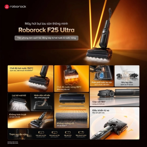 Với thiết kế hiện đại, lực hút khủng, khả năng làm sạch sâu bằng nhiệt, chống rối tóc và khả năng tự vệ sinh sau khi sử dụng, Roborock F25 Ultra không chỉ là máy hút bụi lau nhà thông minh mà còn là giải pháp chăm sóc sàn toàn diệncho gia đình hiện đại.