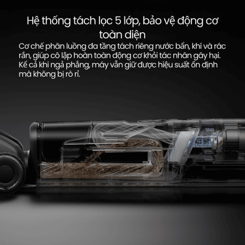 Được trang bị hệ thống lọc bụi 5 tầng, Roborock F25 Ultra ngăn ngừa bụi mịn và các hạt gây hại xâm nhập vào động cơ, giữ máy vận hành ổn định và tăng tuổi thọ thiết bị một cách hiệu quả. Đây là điểm cộng lớn so với nhiều dòng máy cùng phân khúc.