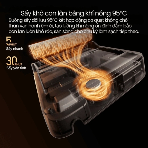 Không chỉ là dock sạc đơn thuần, dock thông minh của F25 Ultra còn tích hợp tính năng tự giặt con lăn bằng nước nóng 90°C và sấy khô tự động, giúp loại bỏ vi khuẩn, nấm mốc, mùi hôi và luôn giữ thiết bị trong trạng thái vệ sinh tối ưu – không cần vệ sinh thủ công.