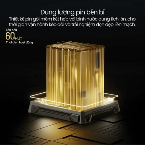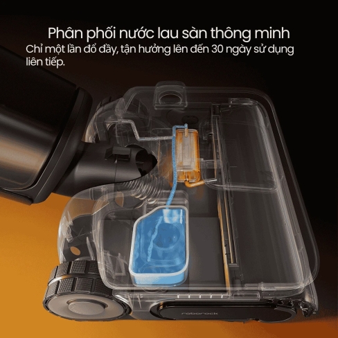 Với cơ chế phân phối nước lau nhà thông minh cùng dung tích chứa lớn, chỉ cần một lần đổ nước, Roborock F25 Ultra có thể hoạt động liên tục trong lên đến 30 ngày. Bình nước được thiết kế hạ thấp, giúp tay cầm nhẹ hơn, đồng thời tăng áp lực bề mặt lên tới 33N, giúp chà sát sàn hiệu quả hơn.