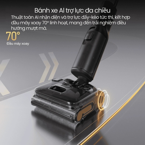 Roborock tích hợp cho F25 Ultra hệ thống bánh xe AI trợ lực đa chiều, giúp người dùng điều khiển máy dễ dàng và mượt mà, kể cả khi hút bụi trên bề mặt có lực cản. Cảm giác nhẹ tay rõ rệt ngay cả khi máy vận hành với công suất lớn.