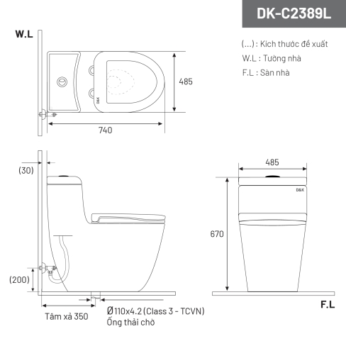 - Tâm xả khuyến nghị: 350 mm (dễ dàng vệ sinh, bảo trì)