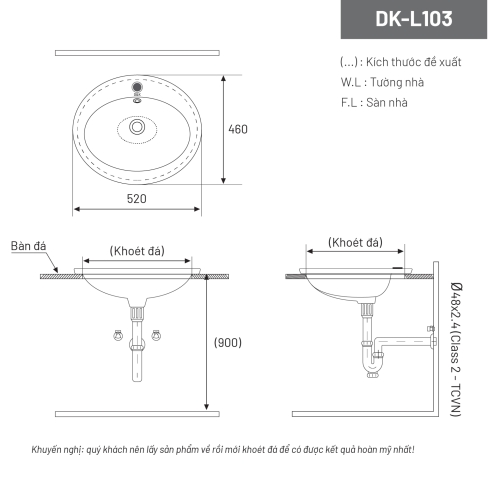 CHẬU LAVABO DƯƠNG VÀNH DK-L102