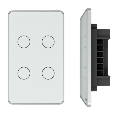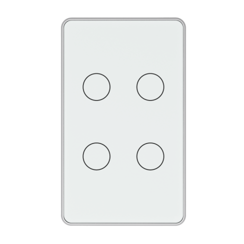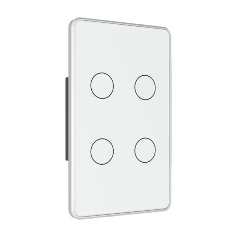 Công tắc cảm ứng thông minh Leto với phiên bản công tắc 4 nút, được thiết kế có kiểu dáng thanh lịch với màu trắng chủ đạo cùng bề mặt kính cường lực hạn chế trầy xước, kháng vân tay. Bốn nút bấm được bố trí đối xứng trên bề mặt, mang lại vẻ đẹp đơn giản mà tinh tế.