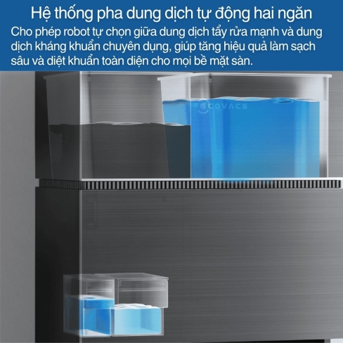 • Hai ngăn chứa dung dịch riêng biệt: dung dịch tẩy rửa mạnh và kháng khuẩn cao cấp.