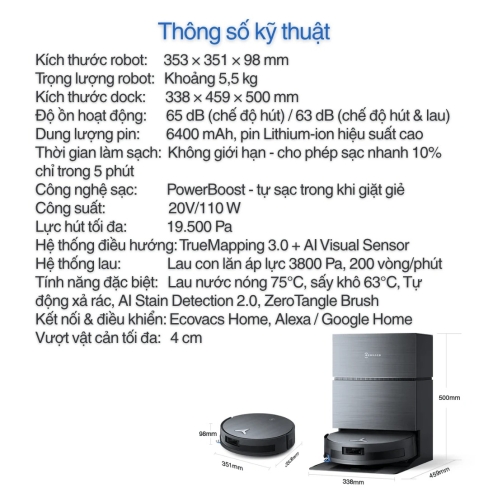 • Ra lệnh dễ dàng qua ứng dụng Ecovacs Home, hoặc Alexa / Google Home.