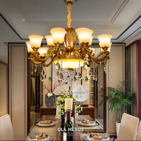 Vật liệu Đèn chùm đồng pha lê K9 + chao đá