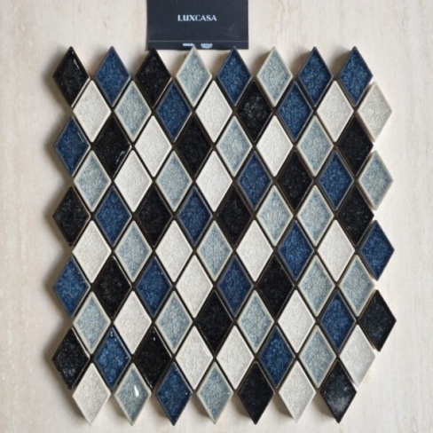 Lấy cảm hứng từ những viên kim cương được cắt gọt sắc sảo, mẫu gạch mosaic hình thoi Crackle-Diamond mang đến vẻ đẹp hiện đại, nghệ thuật và đầy cá tính. Gạch được làm từ men thủy tinh cao cấp, kết hợp kỹ thuật crackle (men rạn tinh xảo), cùng phối màu mix độc đáo, tạo chiều sâu và hiệu ứng bắt sáng sinh động.