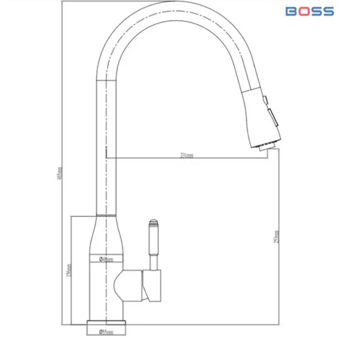 Vòi rửa bát BN620 của Boss được chế tạo từ inox 304 – một trong những chất liệu hàng đầu trong ngành sản xuất thiết bị bếp.